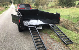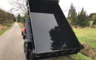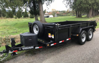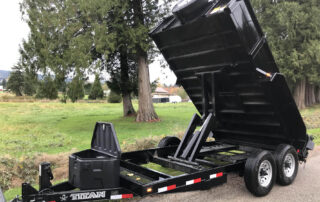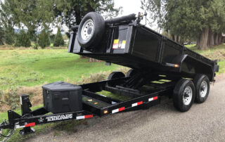 Our 7by12 14K GVW dump trailer is perfect for material hauling, dump runs, and construction jobs. This dump trailer features a rear barn door, that doubles as a spreader gate. It also has a built in tarp. It tows great behind a standard 3/4 ton truck. It is capable of hauling 9500lbs.