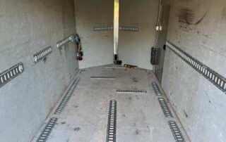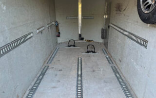 Trailer hitch and ball, 4 d-ring e-track anchors, 8 tethered e-track anchors, 8 ratchet straps, 2 e-track motorcycle chocks, trailer locking devices.