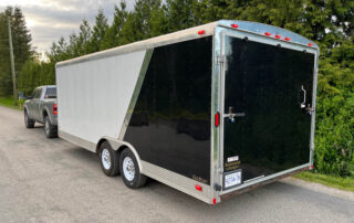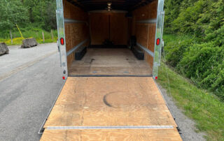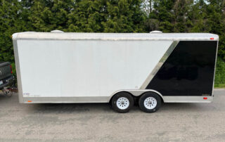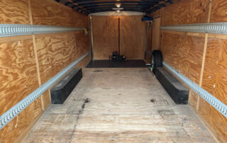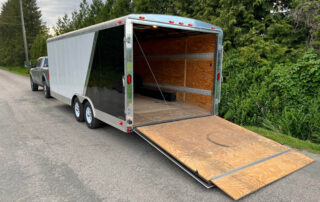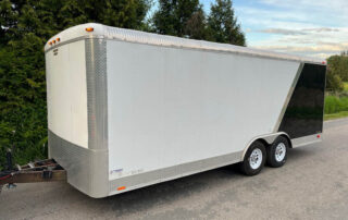 Our 8by20 enclosed trailer is perfect for moving around your classic car. It is also great for loading up all your toys for a weekend away. The back gate lowers down and doubles as a full width ramp. Double row of e-track wall tie downs make it great for moving as well! This trailer is capable of hauling 5500lbs.