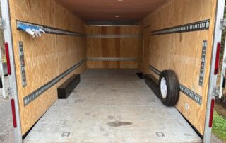 Our 8by20 enclosed trailer is perfect for moving around your classic car or up to 4 large motorcycles (custom set up for 4 bikes, not shown in photos). It is also great for loading up all your toys for a weekend away. The back gate lowers down and doubles as a full width ramp. Double row of e-track wall tie downs make it great for moving as well! This trailer is capable of hauling 5500lbs.