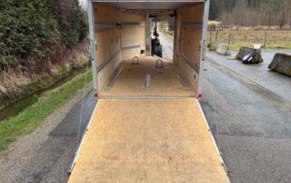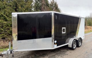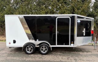 Our 7by14 enclosed trailer is set up to haul two large motorbike. The motorcycle wheel chocks can easily be removed so the trailers can be used to haul household items! This trailer is equipped with a drop down front ramp as well, no need to back out your bikes or machines! Added bonus of a small fuel door to make refuelling machines that much easier! This trailer is capable of hauling 4000lbs.
